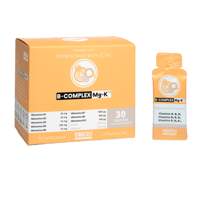 Unikalne połączenie kompleksu witamin B z magnezem i potasem w postaci żelu liposomalnego.